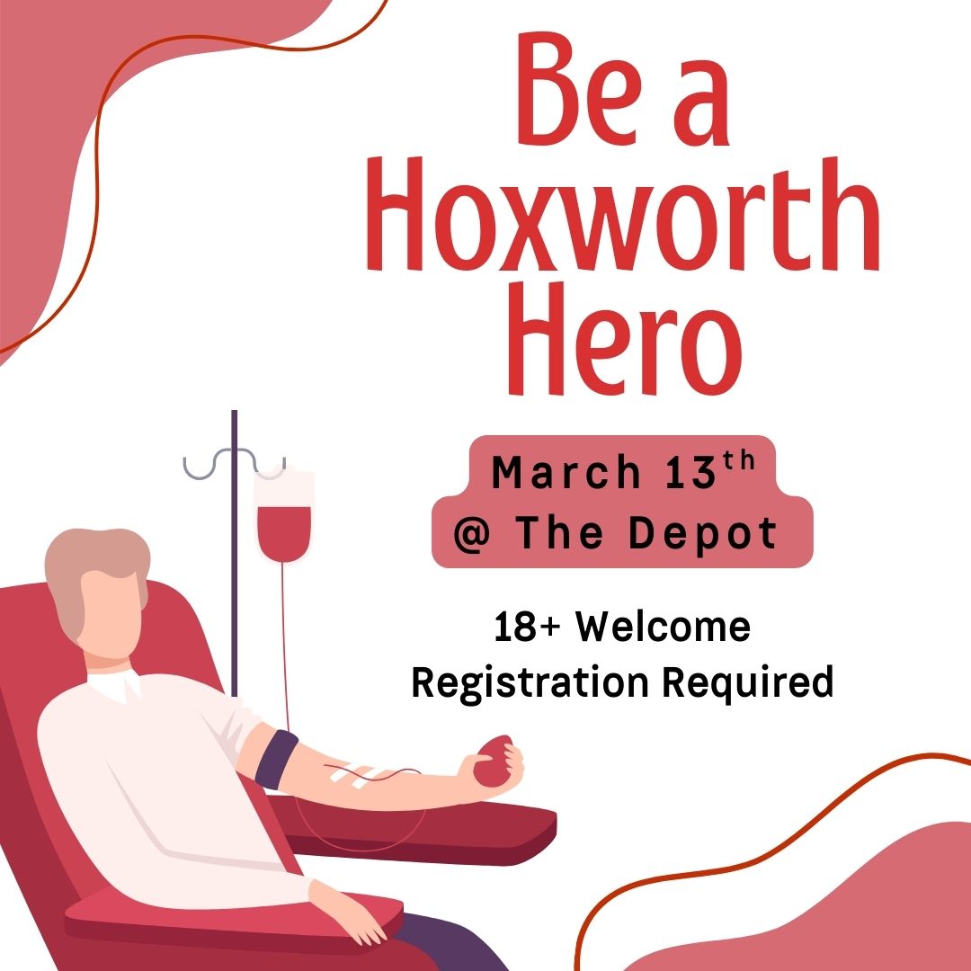 Sign up to donate blood on the Hoxworth Donor Bus at the Local History Library @ the Depot. The building will be open to use for beverages, snacks, and bathroom breaks.