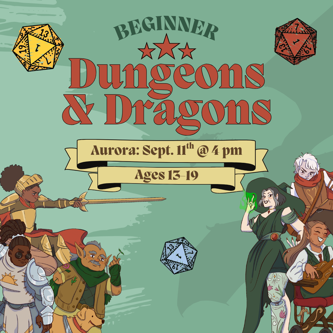 Interested in learning how to play Dungeons and Dragons? Stop by the library for our Beginners Dungeons & Dragons program! We’ll be meeting on the second Thursday of every month at 4 pm to learn the basics of the game! No experience is needed!
