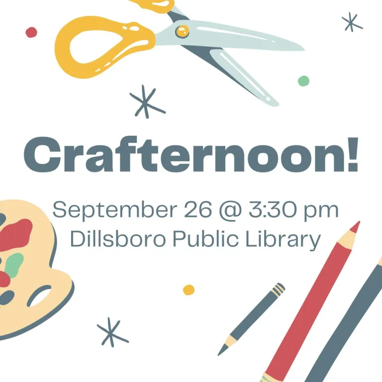 Get crafty with Miss Emily after school at the Dillsboro Public Library for our September Crafternoon project! On September 26th after school (3:30 pm), meet up with friends or come by yourself to create your very own Scribble-Bot! What is a Scribble-Bot you ask? It’s a robot you can build yourself that creates its very own picture! Learn how to build one with Emily and take it home with you for endless creation!