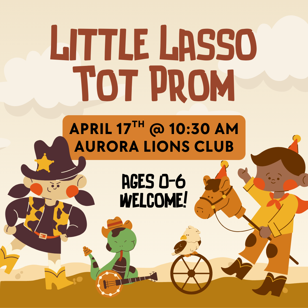 Yee haw partners! Get ready to dust off your boots and grab your hats for our annual Tot Prom Storytime with Miss Emily and Miss Tammy. We encourage all cowboys and cowgirls to mosey on down for music, crafts, snacks, and a rootin tootin good time!
